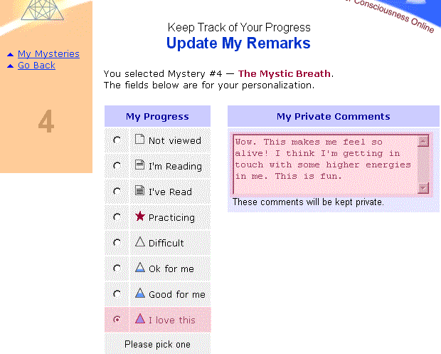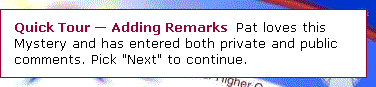 Mysteries.Net > Free Trial > Quick Tour > Adding Remarks